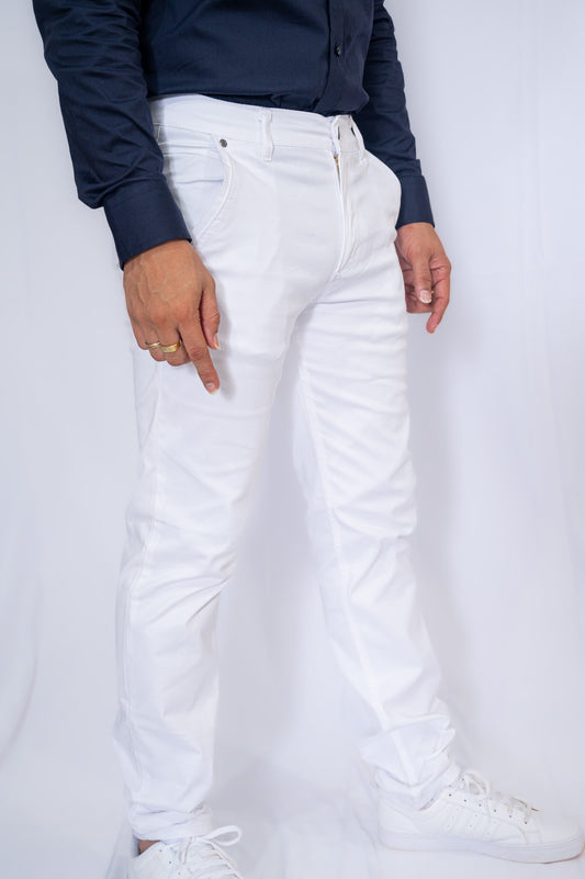 Pantalon Blanc Slim en Coton - Confort et Élégance Décontractée