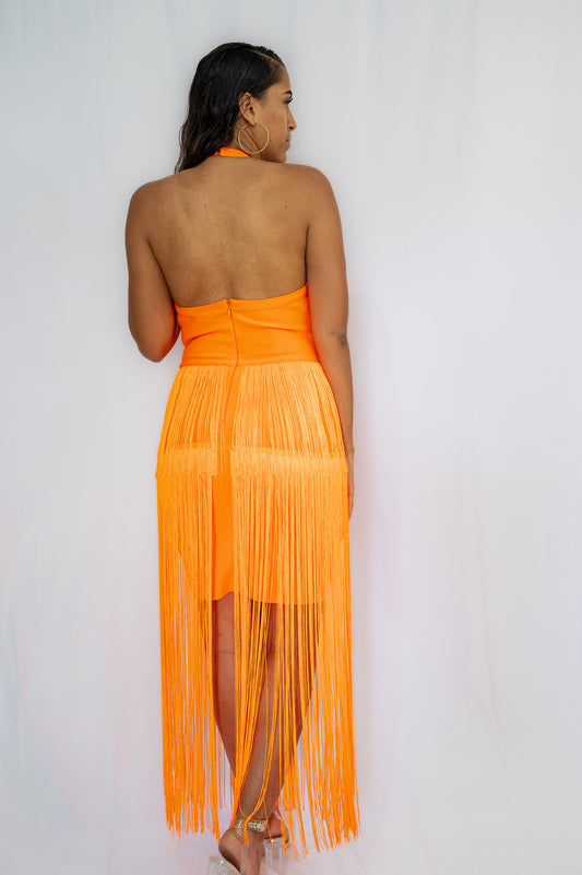 Robe Femme à Franges Orange – Éclat tropical et style dynamique pour vos sorties estivales